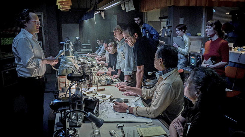 Peter Sarsgaard, Zinedine Soualem, John Magaro, Ben Chaplin (en noir) et Leonie Benesch (en rouge) dans 5 septembre (September 5) de Tim Fehlbaum.